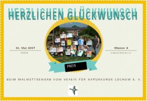 Die Freude war groß, als der Brief vom Naturkundeverein geöffnet wurde: Beim Malwettbewerb hat die 2. Klasse der Elbauenschule Gartow unter Leitung von Frau Elke Pengel den 1. Platz belegt und ein Navigationsgerät gewonnen!